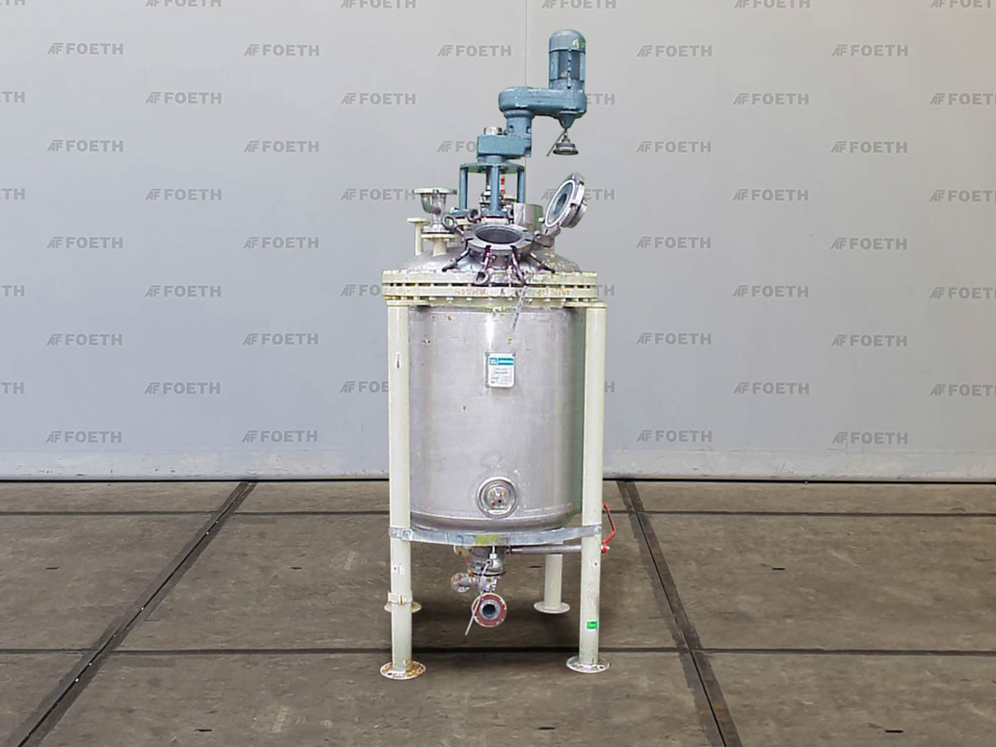 General SKU064Y441 MakeHoeksma & Velt Leeuwarden No.12150 V-310 Year of construction1990 LocationBarneveld Pressure Working pressure0.5 Bar Working pressure jacket4 Bar Vacuum possible jacketcheck Main Features MaterialStainless steel Volume800 Ltr. Motor1.5 KW Specified Features - Stainless Steel Reactor Reactor(1x) Capacity800 Ltr Vessel sizesdia. 850x1250mm Dished bottomcheck Dished top sidecheck Top connectionsdia. 150mm + dia. 125mm + 6x dia. 50mm Outletdia. 80/40mm With jacket(lower part of vessel) Max. temperature100/200 Degr. C. (vessel/jacket) With paddle stirrermake Jongia, type LM-40 Motor1,5 KW, 380 Volt Speed mixing shaft± 25-164 Rpm Stainless Steel Reactors MaterialStainless steel 1.4404 (316L) Information Floorspace1,4x1,4 M Total height2,5 MAgrochemicalsPlastic & polymersStainless Steel ReactorsCatalysts & fillersSolventsDiscountDetergent ...