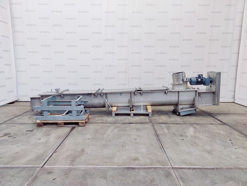 General SKU239T284 MakeGuttridge TypeScrew Conveyor Mach.No.580194-3-1 sc6.2 Year of construction2013 Main Features Motor5.5 KW Length4700 mm Inlet diameter400 mm Specified Features - Horizontal screw conveyor MaterialStainless steel Horizontal conveyor screwcheck Trough-typecheck Diameter460 mm Length4700 mm Between inlet and outlet3900 mm Shaft diameter150 mm Pitch325 mm Inletdia. 400 mm Outletdia. 300 mm Motor5,5 kW 400/690 Volt Screw speed89 rpm Outlet height1400 mm Height between in- and outlet1400 mm With coverscheck Information LocationBarneveld Mounted on wheelscheck Floorspace5,8x0,9 m Total height1,4 m Weight1600 kg CEcheck Extra Specificationswith a rail system Technical specs Extra informationScrew blade thickness 6 mmBiotechnologyAgrochemicalsSpicesPlastic & polymersHorizontal screw conveyorsCatalysts & fillersFeed additivesPaper & otherSo ...