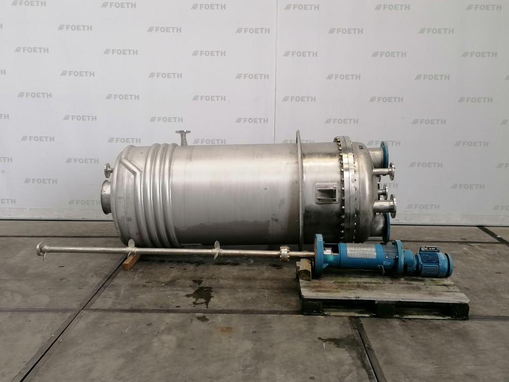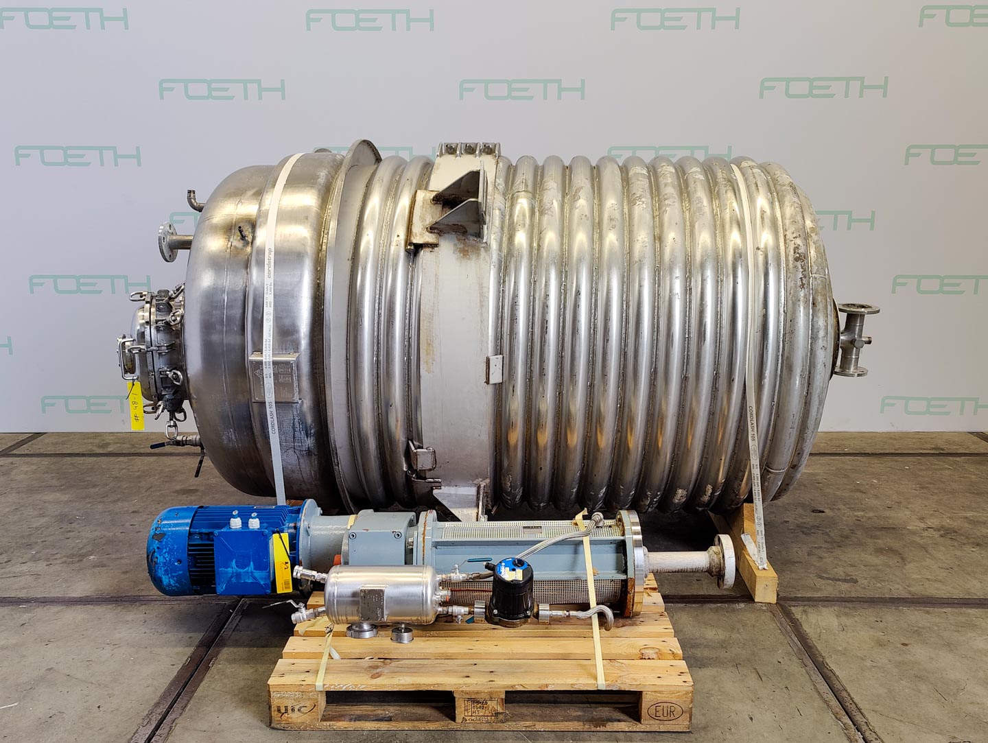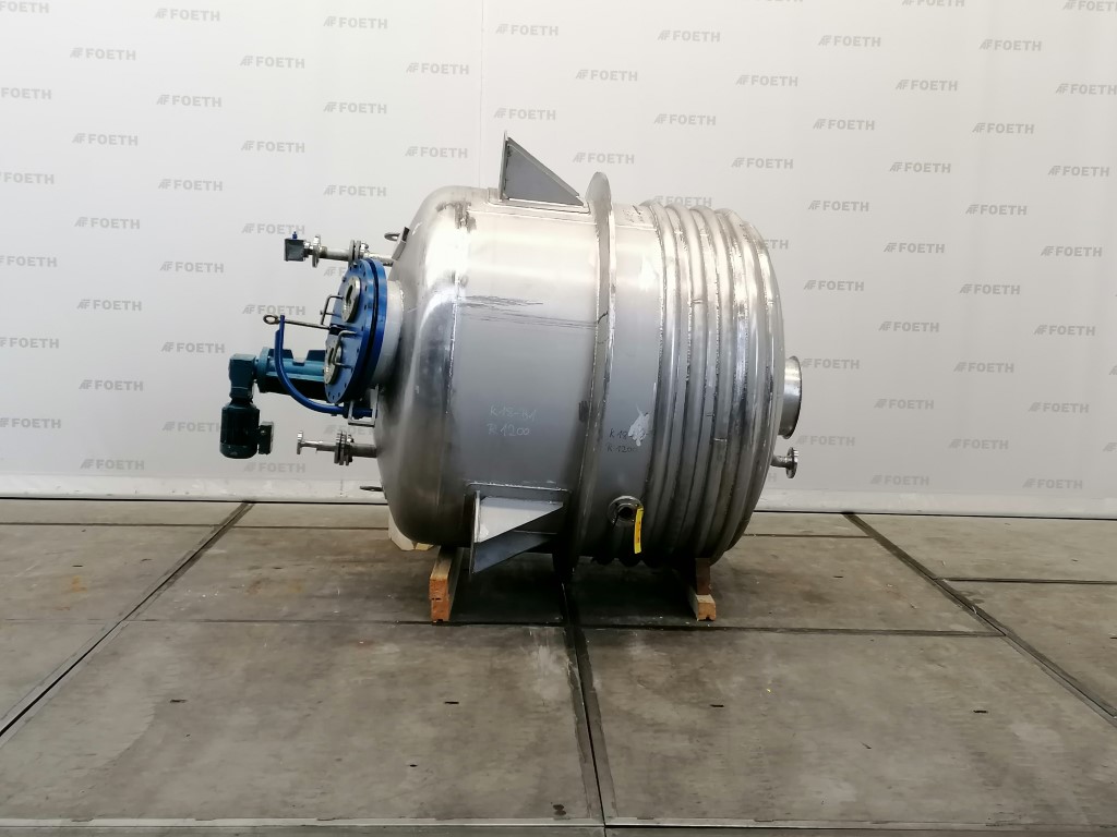 General SKU331U668 MakeAngelo Pilotta LocationBarneveld TypeRG Pressure Working pressure5 Bar Vacuum possiblecheck Working pressure jacket12 Bar Main Features MaterialStainless steel Volume3200 Ltr. Motor8.8 KW Specified Features - Stainless Steel Reactor MaterialStainless steel 1.4401 (316) Stainless Steel Reactors Reactorcheck Capacity3200Ltr. (bruto 4100) Vessel sizesDia. 1460x2680 mm Dished bottomcheck Dished top sidecheck Manholecheck 280x390mm Top connectionscheck DN100,DN65, DN50(3x), 1/2(2x) OutletcheckDN50(2x) With jacketcheck 250Ltr+70Ltr. Max. temperature190°C With turbo stirrerCurved blade disc turbine Motorcheck 6/8.8kW, 400Volt, 980/1475rpm Speed mixing shaft100/150rpm Information No.1325 Year of construction1995 Floorspace1.,8x1,8m Total height3,6m Weight1450 kgAgrochemicalsPlastic & polymersStainless Steel ReactorsCatalysts & fillersSol ...