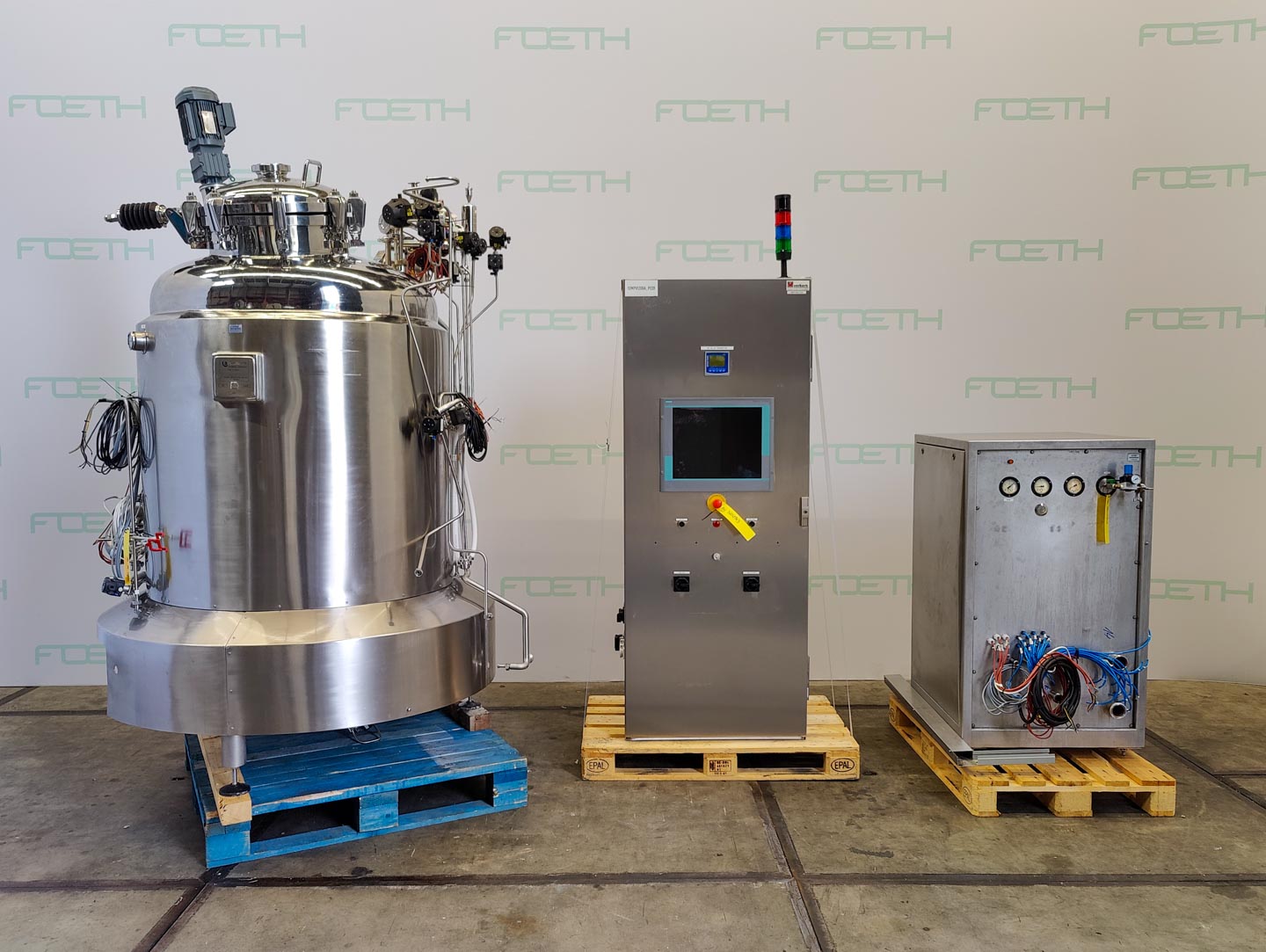 General SKU360U948 MakePierre Guerin Technologies LocationBarneveld CEcheck TypeBioreactor 750L Pressure Working pressure4 Bar Vacuum possiblecheck Working pressure jacket6 Bar Vacuum possible jacketcheck Main Features MaterialStainless steel Volume750 Ltr. Motor0.25 KW Specified Features - Stainless Steel Reactor ReactorBioreactor Capacity750 Ltr. (max. 1105 Ltr.) Dished bottomcheck Dished top sidecheck Manholecheck With jacketcheck(19 Ltr.) Max. temperature150 °C With paddle stirrercheck Motor0,25 kW 220-240/380-415 Volt Speed mixing shaft89 rpm Stainless Steel Reactors MaterialStainless steel 1.4404 (316L) Information No.H1M8051210 Year of construction2009 Mounted on legscheck With switchgearcheck(as is) Weight950 kgBiotechnologyAgrochemicalsPlastic & polymersStainless Steel ReactorsCatalysts & fillersSolventsDetergent & surf.Other pharmaceuticsCosme ...