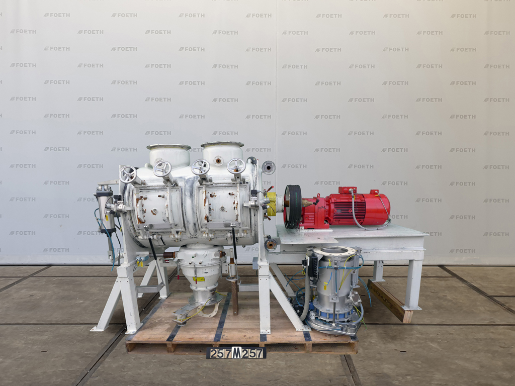 General SKU006E028 MakeCollette, modifications by Ekato Schopfheim TypeGRAL-25 S (test model for VST type dryers) No.89MG2524 Year of construction1989 Mounted on framecheck Pressure Working pressure0 Bar Vacuum possiblecheck Main Features MaterialStainless steel Volume25 Ltr. Specified Features - Universal mixer Paddle dryer(1x) Capacity25 Ltr Trough sizesdia. 370x260mm With jacketcheck Motor1,98/3.0 KW, 500 Volt (Ex) With lump breakercheck Motor1,62/1,18 KW, 500 Volt (Ex) Universal mixers MaterialStainless steel Universal mixercheck Capacity25 Ltr. Vessel sizesdia. 370x260 mm With jacketcheck With motor1,98/3.0 KW, 500 Volt (Ex) With lump breakercheck With motor1,62/1,18 KW, 500 Volt (Ex) Information LocationBarneveld With switchcheck Floorspace1,9x1,0 M Total height1,7 M Weight800 KG ATEX compatiblecheckDiscountUniversal mixersColletteDiscountMixers ...