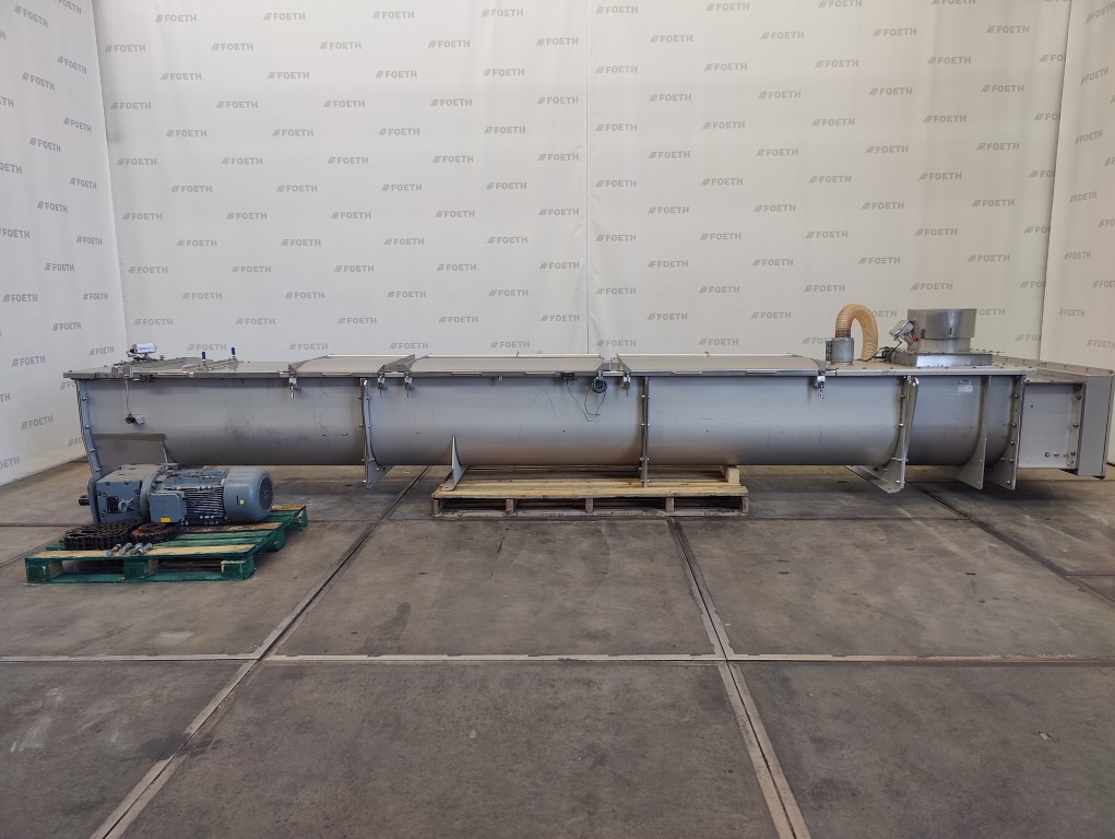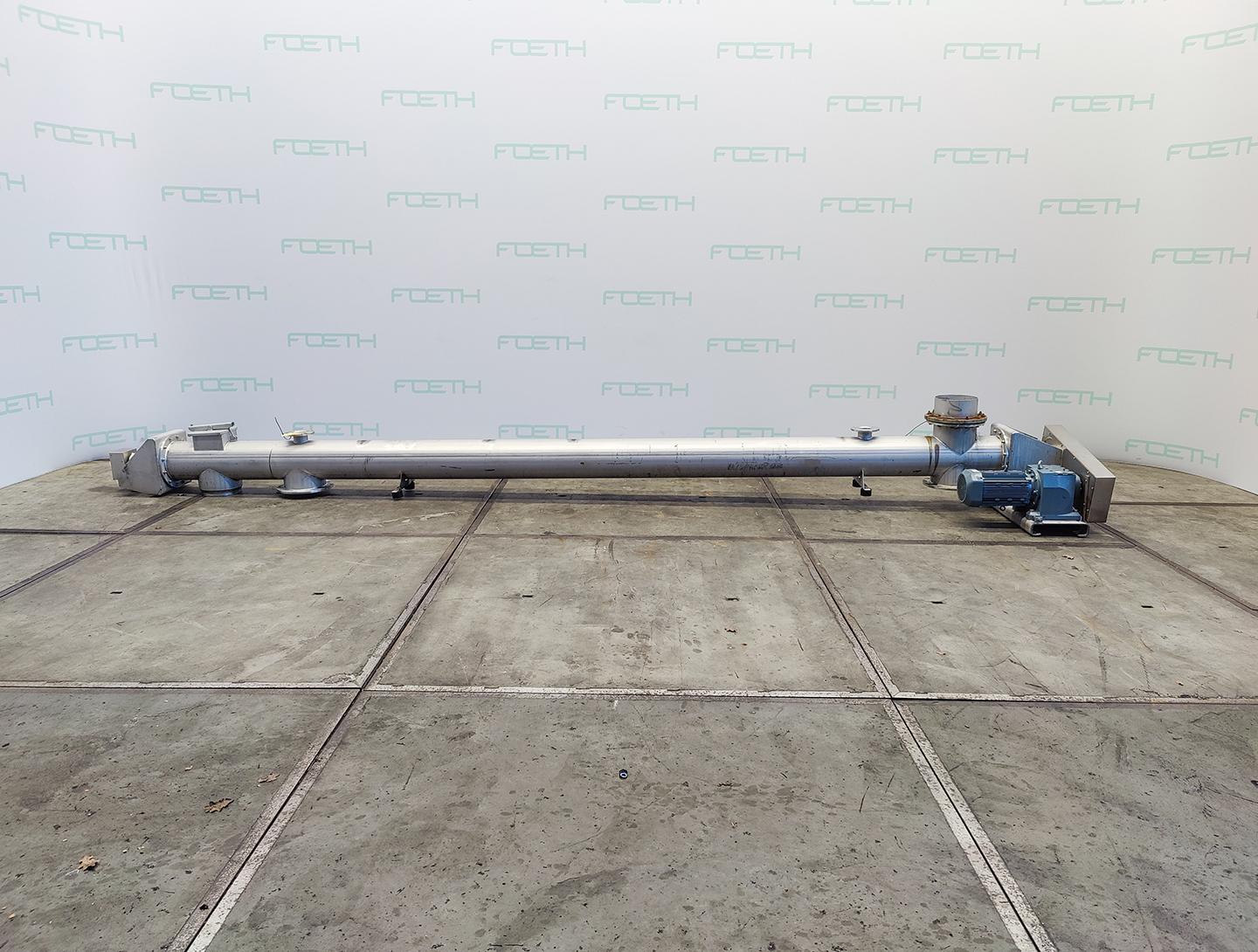General SKU239T286 MakeGuttridge Mach.No.0580194-7-1 Year of construction2013 Main Features Motor18.5 KW Length5000 mm Inlet diameter390 mm Specified Features - Horizontal screw conveyor Horizontal conveyor screwcheck Trough-typecheck Diameter700 mm Length5000 mm Shaft diameterdia. 200 mm Pitch500 mm Inletdia. 390 mm Outlet650x400 mm Motor18,5 kW Screw speed33 rpm Height between in- and outlet1500 mm With coverscheck MaterialStainless steel Information LocationBarneveld Floorspace7,3x1,7 m Total height1,40 m Weight3000 kg CEcheck Extra SpecificationsSynatel level control, type digimatic, Schmersal sensors Technical specs Extra informationScrew blade thickness 6 mmBiotechnologyAgrochemicalsSpicesPlastic & polymersHorizontal screw conveyorsCatalysts & fillersFeed additivesPaper & otherSolventsDetergent & surf.Other pharmaceuticsCosmeticsOrganicsE-waste & met ...