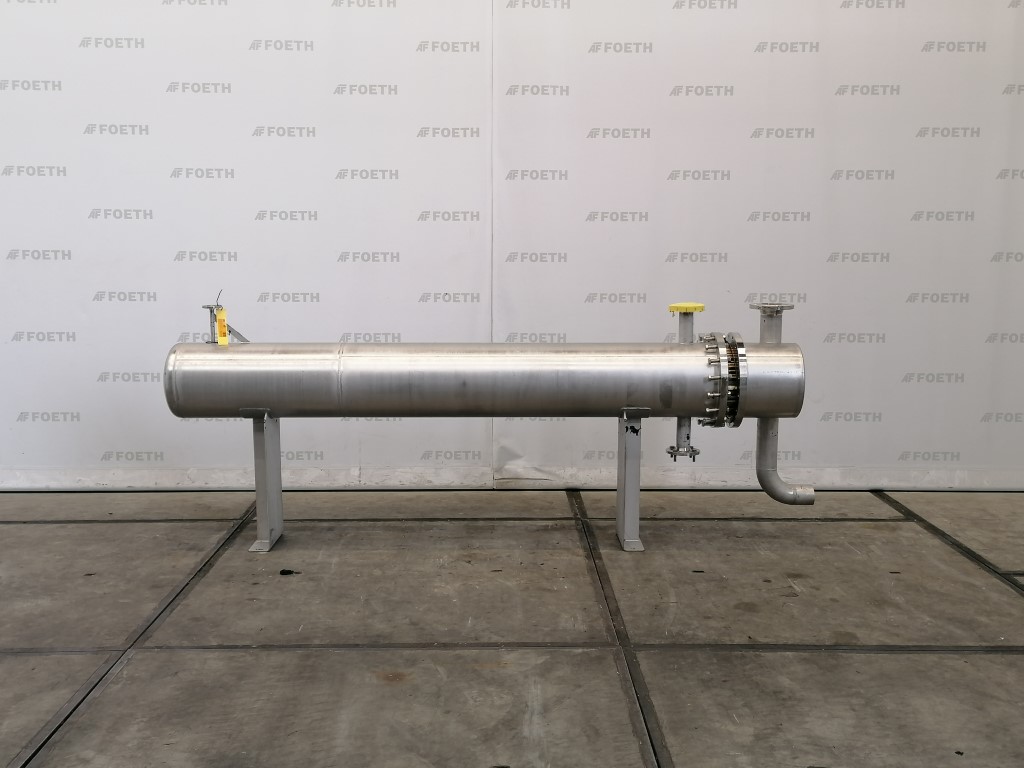 General SKUR0854 MakeZürcher AG (CH) LocationBarneveld Type35 m2 Pressure Working pressure shell6 Bar Working pressure tubes10 Bar Main Features Shell (Material)Stainless steel Tube (Material)Stainless steel Surface35 m2 Specified Features - Shell and tube heat exchanger MaterialStainless steel 1.4404 Heat exchangercheck Horizontalcheck Heating surface35 m2 Tube capacity164 ltr U-typecheck Number of tubes:122 Tube diameter16mm Tube lengthca 5400mm Wall thickness tubes1,0mm Max. temperature-30/200 degr.C Shell capacity206 ltr Shell diameter406mm Shell length3312mm Wall thickness shell4mm Max. temperature-30/200 degr. C Shell connectionsDN65 (2x), DN15 (1x) Cover connectionsDN100 (1x), dia. 100mm (1x) Information No.1886 Year of construction2002 Mounted on legscheck Floorspace3,7x0,6 M Total height1,3 M Weight750 KGBiotechnologyAgrochemicalsSpicesPlas ...