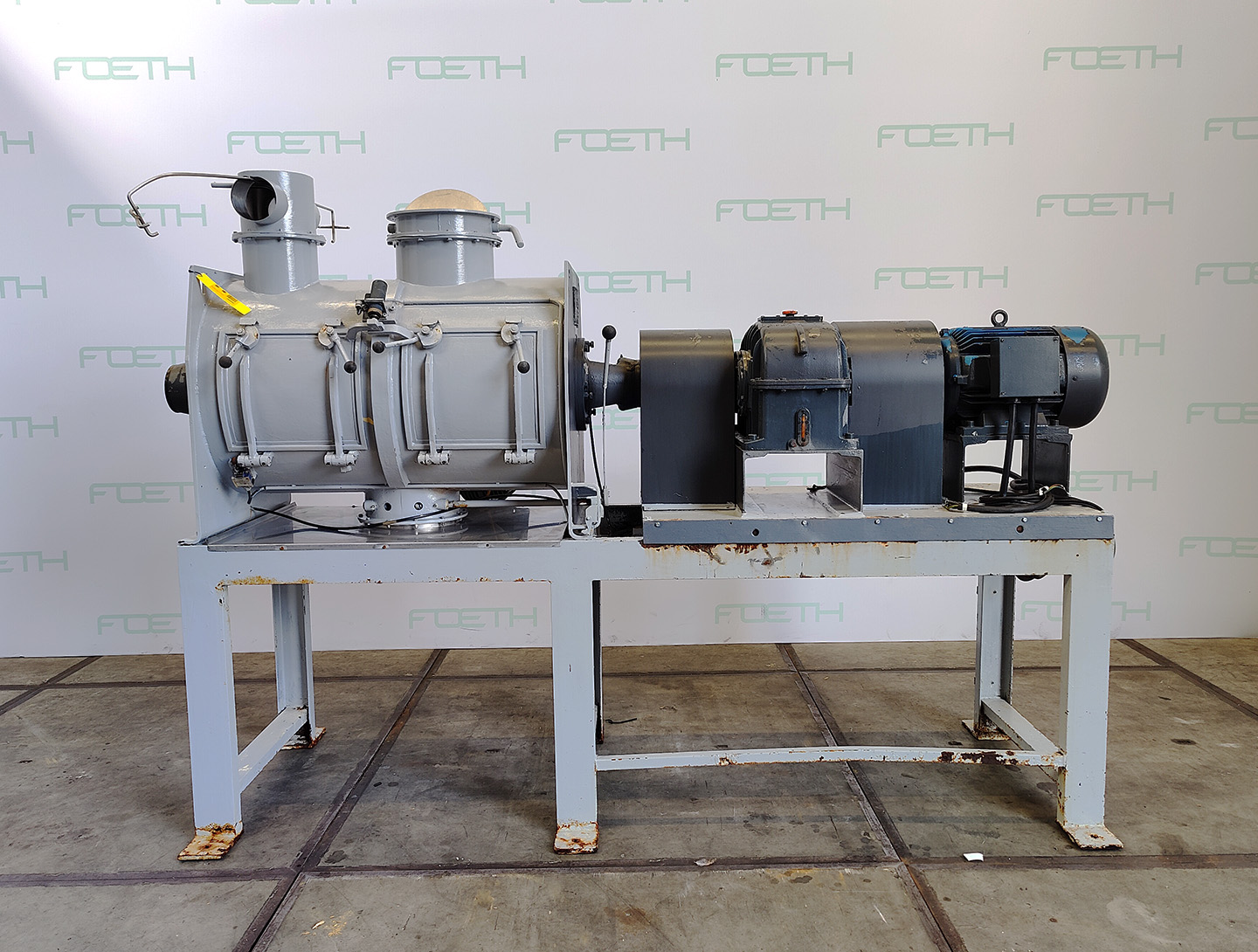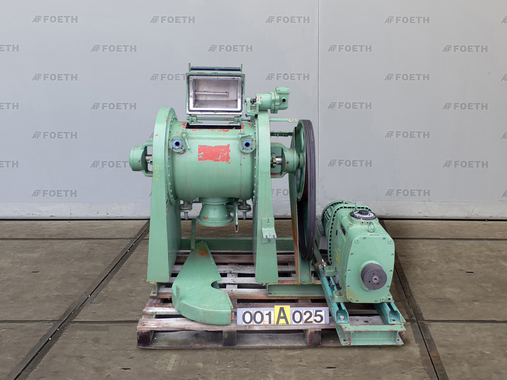 General SKU012Y112 MakeUTV Chemie Equipement S.A. TypeM-40 SL No.3782 Year of construction1993, Reconditioned in 2003 by RPA Process LocationBarneveld Pressure Working pressure0 Bar Vacuum possiblecheck Working pressure jacket4 Bar Main Features MaterialMild steel Volume250 Ltr. Motor45 KW Specified Features - Z-blade mixer MaterialMild steel Z-blade mixer(1x) Capacity400 Ltr, Useful capacity 250 Ltr Trough sizes845x700x750mm With covercheck With jacketcheck Single gearedcheck With adjustable packing glandscheck Motor45,0 KW (Ex) Arm speed± 15,5/22 Rpm Hydraulic tiltingcheck With hydraulic unitcheck Information Floorspacemixer without drive unit 2,2x1,1 M Total height1,8 M ATEX compatiblecheckPlastic & polymersZ-blade mixersCatalysts & fillersFeed additivesPaper & otherDiscountDetergent & surf.Other pharmaceuticsCosmeticsSugarLubricants & oleoAnimal feedO ...