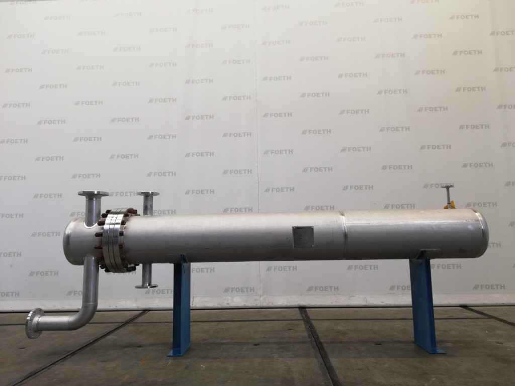 General SKUR0830 LocationBarneveld MakeJaeggi Bern (CH) Type35 M2 Pressure Working pressure shell6 Bar Working pressure tubes10 Bar Main Features Shell (Material)Stainless steel Tube (Material)Stainless steel Surface35 m2 Specified Features - Shell and tube heat exchanger MaterialStainless steel 1.4435 (316L) Heat exchangercheck Horizontalcheck Heating surface35 m2 Tube capacity164 ltr U-typecheck Number of tubes:120 Tube diameter16mm Tube length6000mm Wall thickness tubes1mm Max. temperature-30/200 degr.C Shell capacity206.3 ltr Shell diameter406mm Shell length3000mm Wall thickness shell4mm Max. temperature-30/200 degr. C Shell connectionsdia. 65mm (2x) dia 15mm (1x) Cover connectionsdia. 100mm (2x) Information No.1894 Year of construction1990 Floorspace3.7x0.7 M Total height1.3 M Weight750 KgBiotechnologyAgrochemicalsSpicesPlastic & polymersCatalyst ...