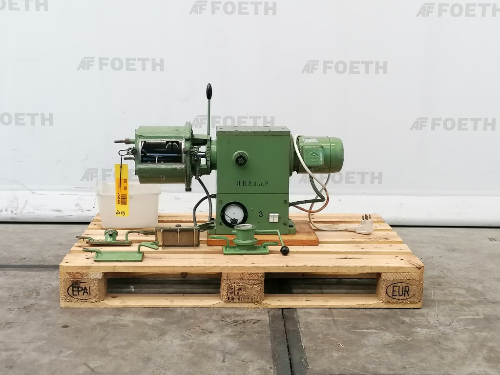 General SKU001A025 MakeDraiswerke GmbH Mannheim TypeT-100 No.43938 Year of construction1971 Mounted on framecheck Pressure Vacuum possiblecheck Main Features MaterialStainless steel Volume100 Ltr. Motor5 KW Specified Features - Powder turbo mixer Powder turbo mixercheck T-armscheck Capacity100 l Trough sizesø 500 x 570 mm Inspection hatch235x360mm Outletdia. 120 mm With jacketcheck With adjustable packing glandscheck Motor5,0 kW (380V, 1460 rpm) With variable speed drivecheck Speed mixing shaft50 -200 rpm MaterialStainless steel 1.4571 (316Ti) Information LocationBarneveld Floorspace1,9 x 1,5 m Total height1,5 m Weight750 kgSpicesCatalysts & fillersFeed additivesOther pharmaceuticsCosmeticsFood additivesSugarAnimal feedOther feedConfectionerySolid pharmaceuticsDyes & pigmentsMinerals & inorganicOther chemicalStarchTea, herbs & coffeePowder turbo mixersGene ...