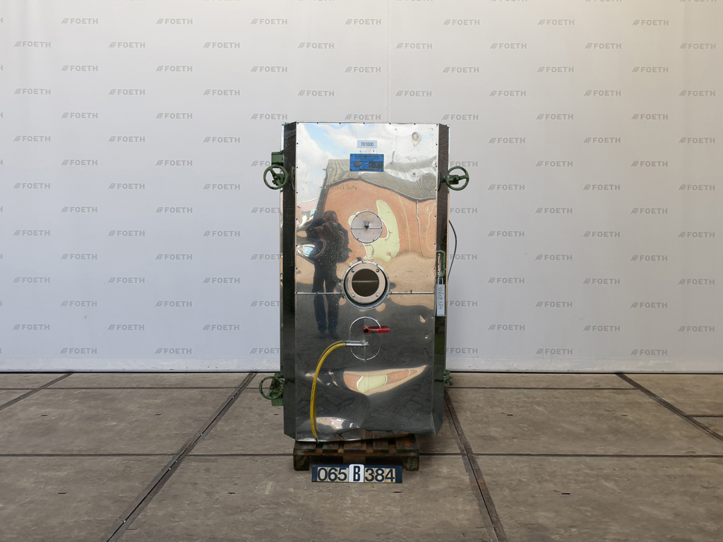 General SKU065B384 MakeBabcock-BSH AG Krefeld TypeVakuumschrank 10/75/100/1/Sp Year of construction1979 LocationBarneveld Pressure Working pressure0 Bar Vacuum possiblecheck Working pressure trays3.1 Bar Main Features MaterialStainless steel Volume1500 Ltr. Surface7.5 m2 Specified Features - Tray dryer Tray dryer(1x) Stainless steel housingcheck Stainless steel trayscheck Heating surface7,5 M2 Drying chamber capacity1500 Ltr Max. temperature110 Degr. C. Number of trays9 plates + bottom plate Tray sizes750x1000mm Distance between the trays150mm Tray capacity9x 8Ltr + bottom plate (I=8 Ltr) With 1 doorcheck MaterialStainless steel Information Floorspace1,6x1,3 M Total height2,1 M Weight2150 KGDiscountTray dryersBabcock-BSHDiscountDryers > Tray dryersBrand > Babcock-BSH What you can expect from Foeth: -- Machine is in working condition -- At a reduced price co ...