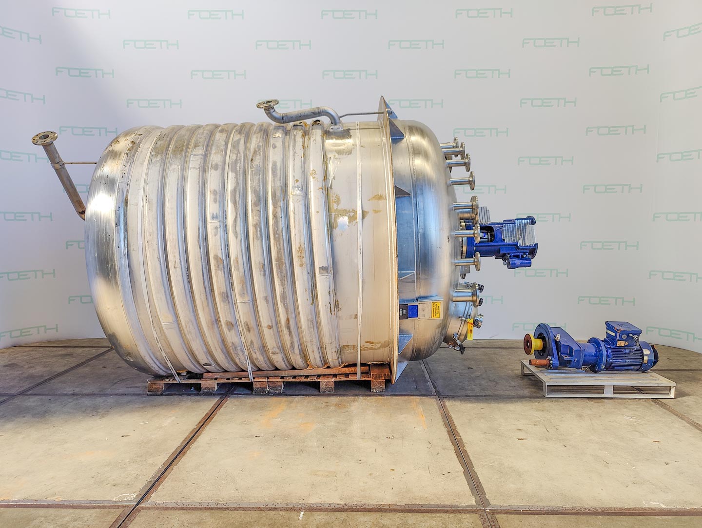 General SKU345S667 LocationBarneveld MakeENCO Energie Componenten GmbH (AT) No.3385 Pressure Working pressure3.2 Bar Vacuum possiblecheck Working pressure jacket9 Bar Main Features MaterialStainless steel Volume6300 Ltr. Motor3.6 KW Specified Features - Stainless Steel Reactor MaterialStainless steel 1.4571 (316Ti) Stainless Steel Reactors Reactorcheck Capacity6300 Ltr (8100 Ltr ) Vessel sizesdia.2000 x 2108 mm Dished bottomcheck Dished top sidecheck ManholeDN500 Top connectionsDN100, DN80 (4x), DN50 (2x), DN25 (2x) OutletDN80 (2x), DN25 With jacket(250 Ltr) Max. temperature200 °C With paddle stirrersigma SNR 25-06 Motor3,6 KW, 220/380 Volt Speed mixing shaft7,1-43rpm Information Year of construction1990 Floorspace2,3x2 m Total height4 m Weight2400 kg Extra Specificationsbio reactor BiotechnologyAgrochemicalsPlastic & polymersStainless Steel ReactorsCa ...