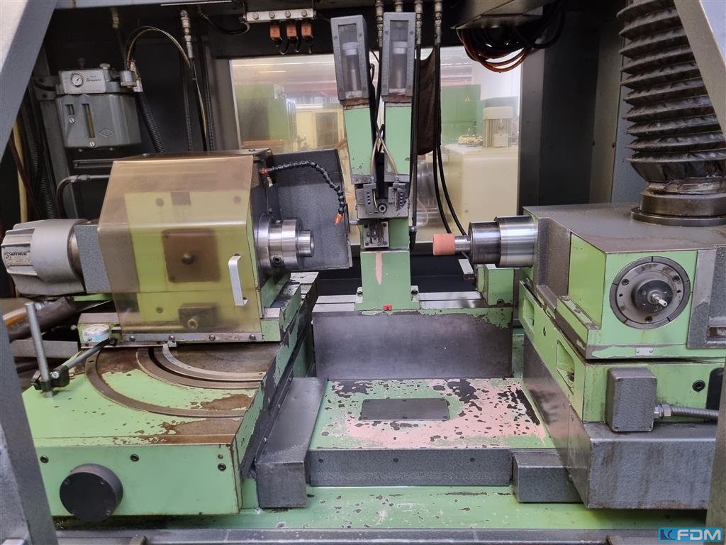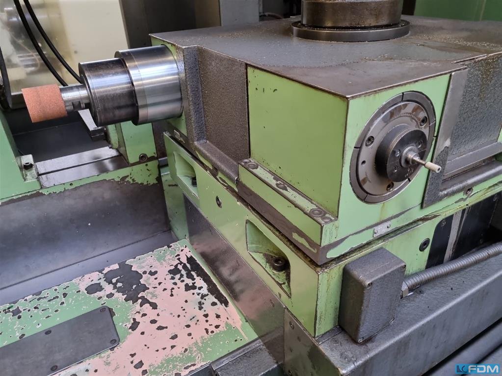 internal diameter: 120 mm grinding depth: 200 mm swing diameter: mm total power requirement: 4 kW weight of the machine ca.: t dimensions of the machine ca.: m Grinding diameter, internal, max., approx. 3 - 120 mm Grinding depth, approx. 200 mm Height of centres above rotating workpiece slide 132 mm Max. swing Ø in front of rotating workpiece slide, approx. 450 mm Work spindle admission 40 mm Table stroke, max. (Z axis) 480 mm Workpiece cross adjustment (X axis) 50 mm Turret head cross adjustment (U axis) 50 mm Workspindle head swivelling (B axis) -30 / +45 ° (manual) Speeds of workspindle, infinitely variable 75 - 1,300 rpm Grinding spindle speeds 9,500 - 150,000 rpm Grinding spindle drive 4 kW Total electrical load, approx. 8 kW - 380 V - 50 Hz Weight, approx. 3,000 kg Accessories / Special Features TRIPET (Bruetsch) CNC Control for 3 axes (Z, X and U) with electric hand wheel, with ...