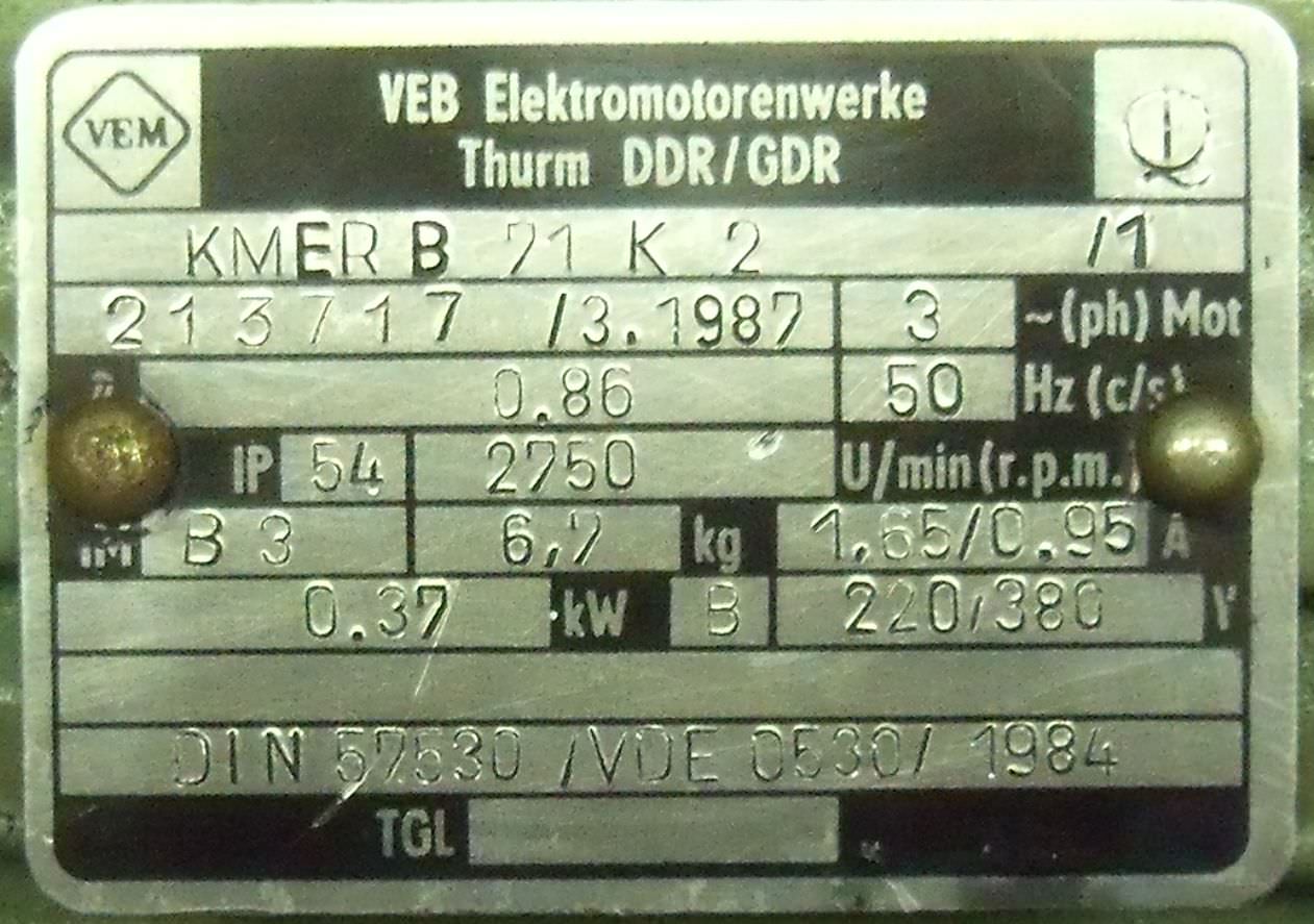 electric motor, three-phase motor -Power: 0.37 kW -Speed: 2750 rpm -Shaft diameter: 14 mm -Design: B5 -Protection class: IP 54 -Weight: 9.5 kg